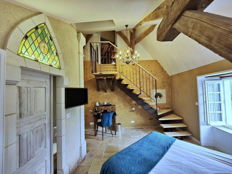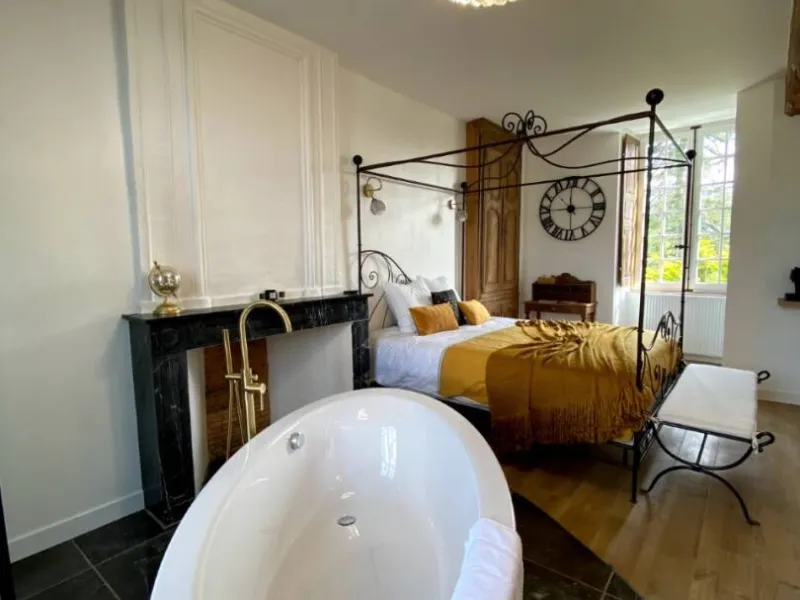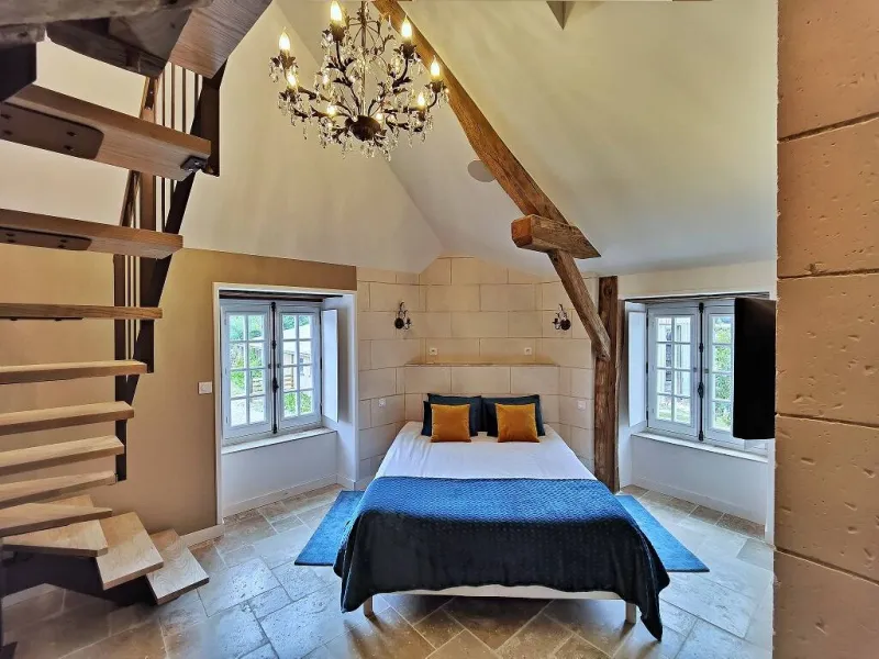 Just 5 minutes south of Château-Gontier-sur-Mayenne, on the main road between Laval and Angers, Bas Chitray welcomes you to its verdant setting of a large orchard and 5 hectares of oak trees. After a long, shady drive, you'll come to a majestic lime tree, giving way to an orangery and a building dating back to the 14th century. Le Bas Chitray has 5 guest rooms, including a 65m² mezzanine suite with jacuzzi and private home cinema, located in a former chapel. In addition, we offer 2 fully-equipped gîtes, each sleeping 4 and 8 people. For your business meetings or training sessions, take advantage of the 60m² fully-equipped and connected meeting room. Stop off at this place steeped in history to start your tour of the Mayenne and Anjou regions, to make a stopover on your holiday route or for your business trip. Enjoy a relaxing stay in the chic countryside!Discover the portrait of Aurélien Landeau, Slowlydays volunteer.