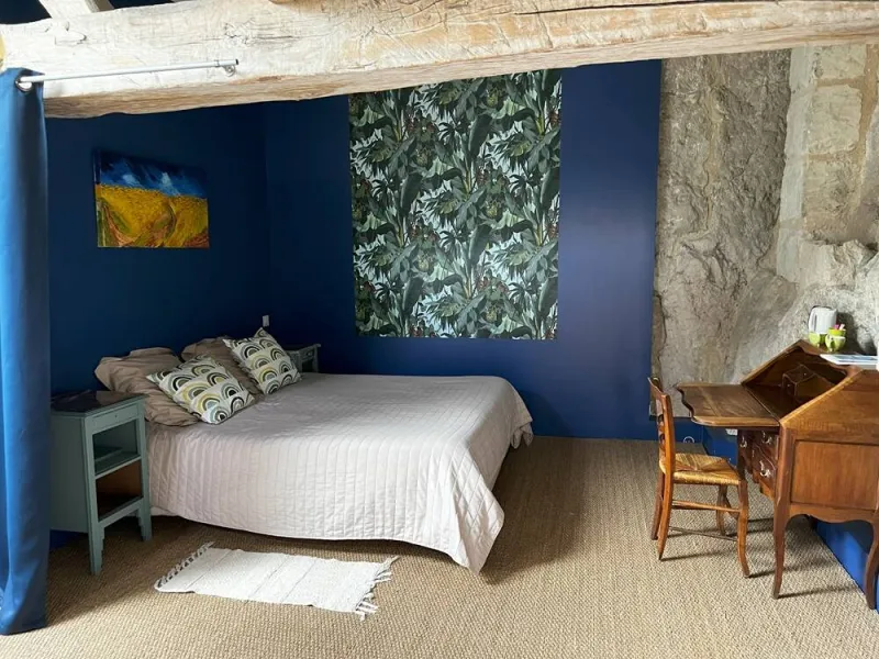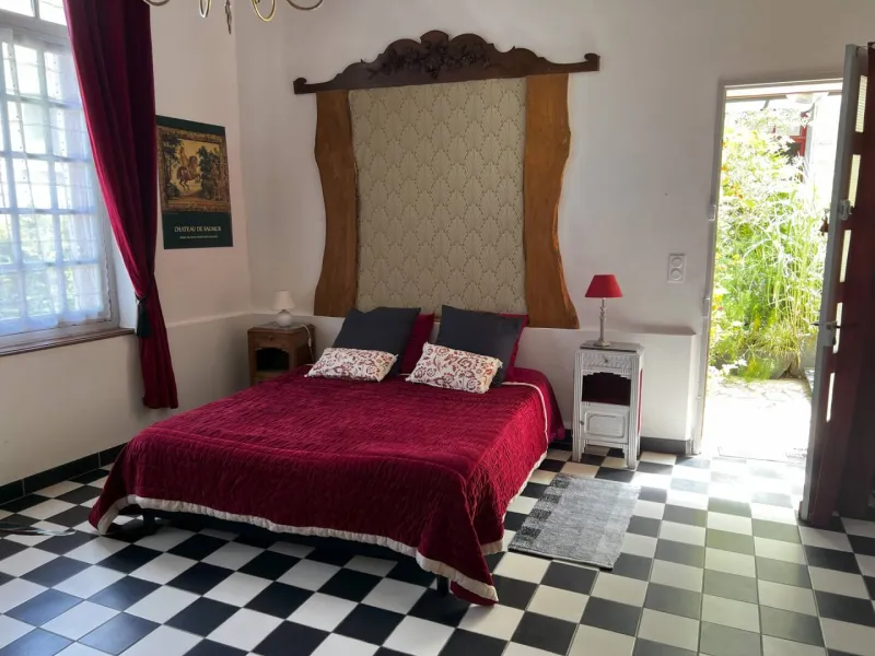 Your hosts, Geneviève and Christian, will give you a warm welcome to this historic house built in 1695, with its unusual red doors and shutters and large central courtyard planted with trees and shrubs. On request, you can discover the 15th-century cellar, which contains a spring!