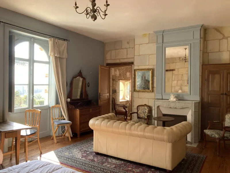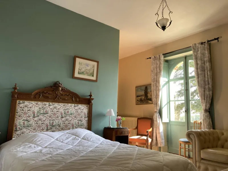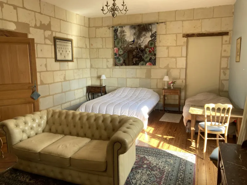 To reach your room, you will pass through an ancient gate and drive through the park for 400 metres (a majestic climb) before arriving at the château. Set in 9 hectares of parkland (an exceptional vantage point!), you will discover the historic home of the Veuve AMIOT, creator of a house of Fines Bulles in 1884. Ideally situated between Angers and Saumur, between the famous vineyards and their tasting cellars or the horses of the Cadre Noir, you will be warmly welcomed by Isabelle, the owner.Each room (Colette, Ernest or the Suite Amiot) sleeps 2 or 3, and has a view over a large courtyard... and the Loire. A courtesy tray awaits you in your room, along with a welcome gift. In the garden, you can enjoy the jacuzzi area, available on reservation (access at an additional cost).