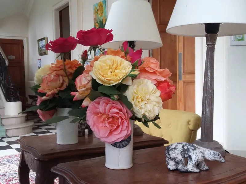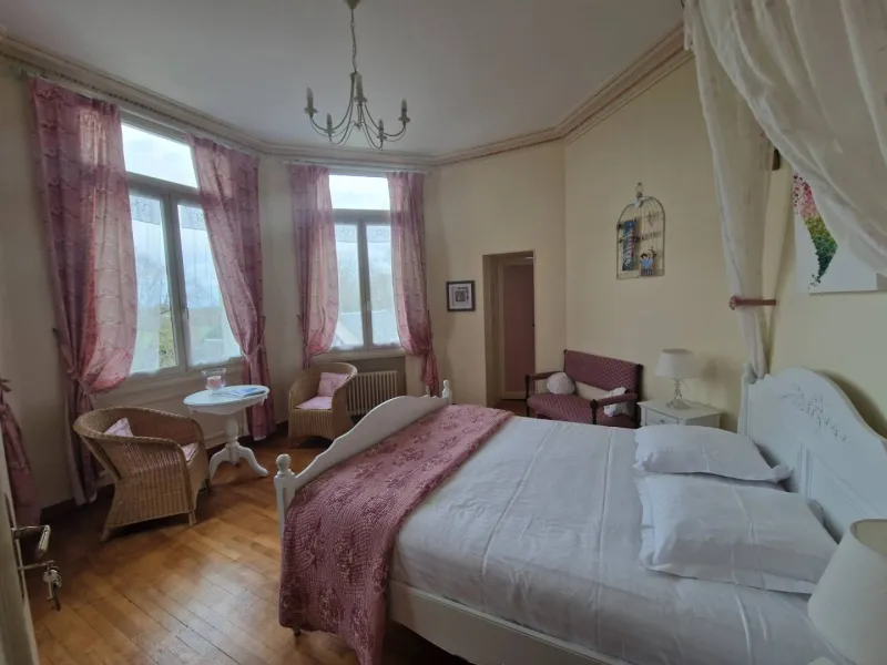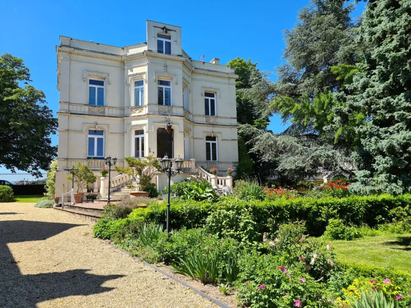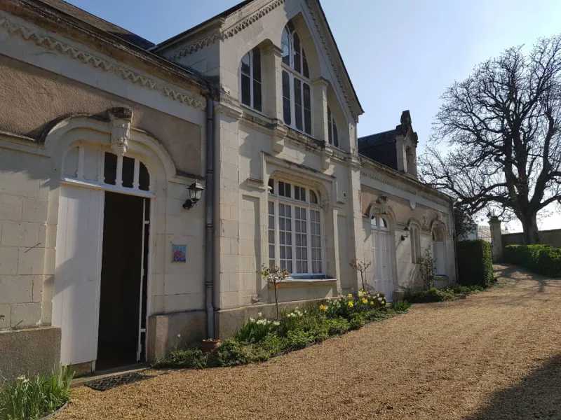 Bed and breakfast ideally located on the Loire levee, a tourist route overlooking the Loire between Angers and Saumur.Enter the village of "Les Rosiers sur Loire" in Gennes-Val-de-Loire. Push open the two large grey wrought-iron gates, cross the park, climb the stone steps and ring the bell on the porch. This is where Odile Bousselin, the owner of this magnificent 19th-century Anjou bourgeois residence, welcomes you. Turn around from the balcony at the front door, and you can see the verdant parkland adorned with fir trees, lime trees and even a rose garden.