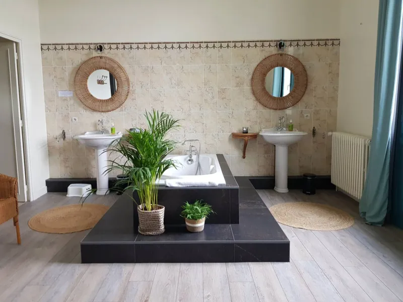 Please note: depending on your requirements, the 180 cm bed in the "Santal" and "Iris" rooms can be configured as 2 single 90 cm beds. The 160-size bed in the "Coriandre" room can be converted into 2 80-size beds. To be specified at the time of your next booking.