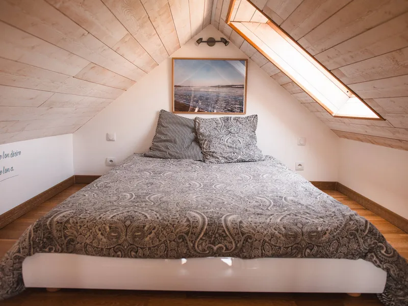 Upstairs (steep staircase - see photo) is the sleeping area (double bed).