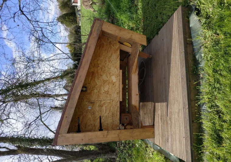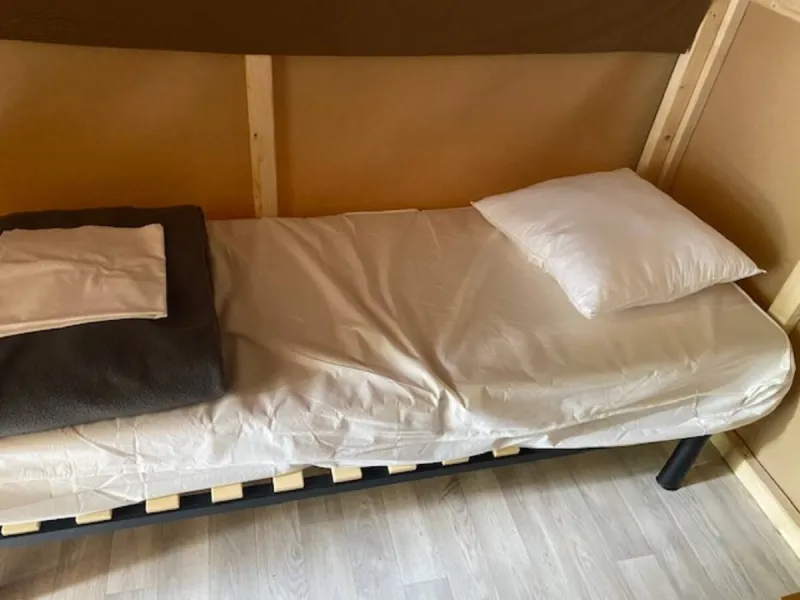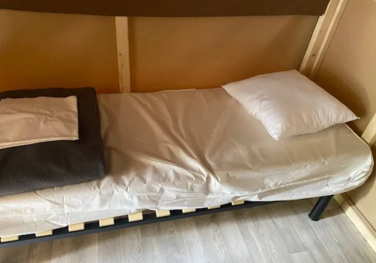 Sleep in an unusual accommodation at Camping des Rochers des Parcs. The cyclo-tent is a half-wood/half-tile tent structure on a floor with 2 single beds (also available in a single model) and with electricity (European plugs). The advantage for cyclists is that bikes can be stored in the back of the hut in a bike box.A must for travelling light on the Vélofrancette.