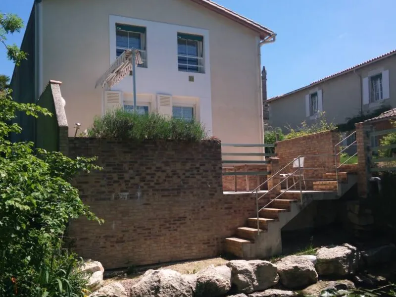 Cottage of 6 pers. independent waterfront, sunny, in the heart of the Marais Poitevin. Private terraces with garden furniture, common garden with barbecue. Ground floor: living room, kitchen, wc, laundry. On the floor: 1 ch. with bed 180, bathroom-wc, 1 suite with 1 ch. 1 bed 160, 1 other with 2 beds 90, room of water-toilet. Common heated indoor swimming pool with aquagym equipment, swiss-ball, private parking, bike storage, WiFi. In the heart of the Marais poitevin, walks on foot, by bike, in barque lent free. Private port, fishing on pl. possible. Restaurants, shops 100 m., La Rochelle, Ile de Ré 40 minutes, Futuroscope 1:10, Puy du Fou 1:30. Cottage labeled "Values Regional Natural Park" of Marais Poitevin, national brand that supports tourist hosts engaging in responsible for the preservation of the territory, guarantee of an authentic stay for visitors.Localisation