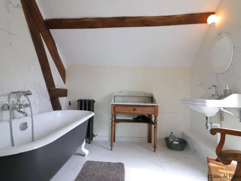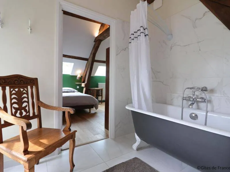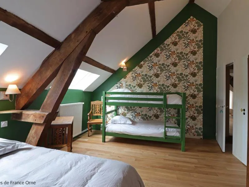 The Domaine de la Boderie, a 16th century stronghold, is a place dedicated to bicycle enthusiasts, hikers and artists. This character cottage was completely renovated in 2021 with ecological and natural materials. Located in the heart of nature, you will be lulled by the song of birds in an exceptional environment nestled in the heart of Suisse Normande.Old independent house, accessible to disabled people. Ground floor: veranda dining room, living room (wood stove), fully equipped kitchen, bedroom (double bed) with private shower room and wc, separate wc. Floor: bedroom (double bed, 2 bunk beds) with private bathroom and separate wc, bedroom (double bed) with private bathroom / wc and extra bed on the mezzanine, bedroom (double bed) with Private bathroom / wc and extra bed on the mezzanine. Central heating included. Sheets provided, placed on the beds. Unfenced garden with trees and nearby water feature.