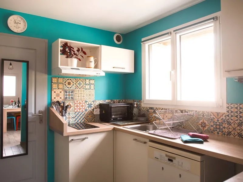 - fully-equipped kitchen (fridge with freezer compartment, induction hob, dishwasher, microwave, coffee maker, oven, kettle). Basic items provided (oil, salt, coffee, filters, sugar, etc.)
