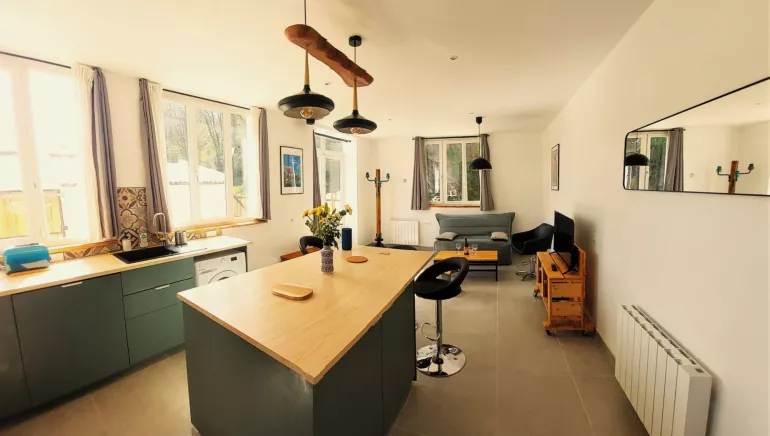 L'aigrette blanche is a modern accommodation for 2-3 persons. This self-catering accommodation is very well furnished and equipped. Everything has been designed to make you feel comfortable. It has an independent garden and a closed room to store your bikes. L'aigrette blanche is located next to the Orne river, and the green way which connects the Caennaise coast to the "vélo Francette". It is close to the shops, the aquatic area and the leisure center of Thury Plein Air. You can rent kayaks, paddles, bicycles and pedal boats. In the heart of the Suisse Normande, l'aigrette blanche is located along the magnificent loop of the Hom and close to many hiking and mountain bike trails.