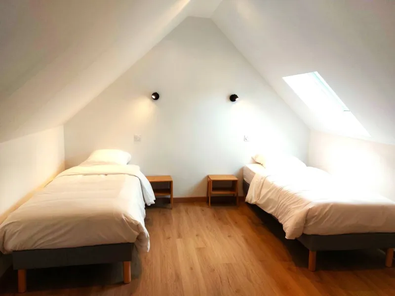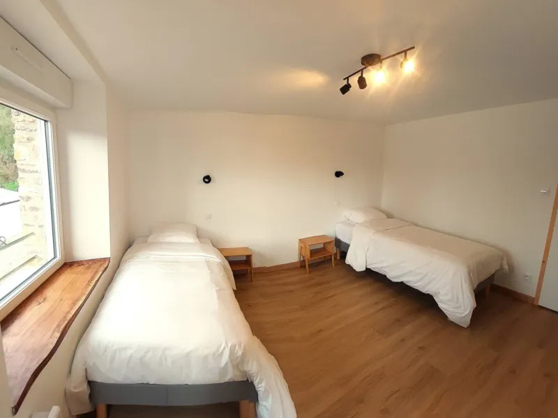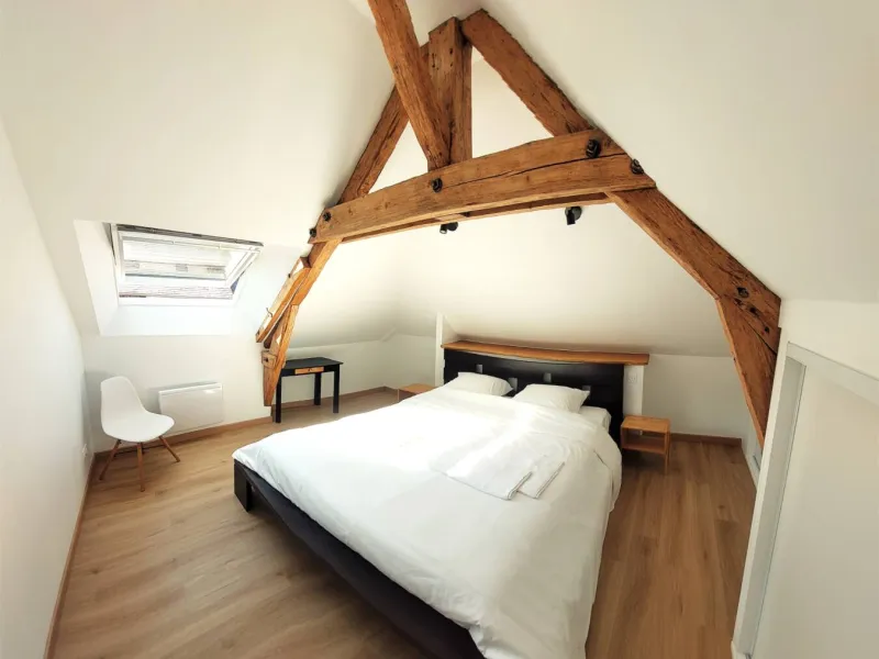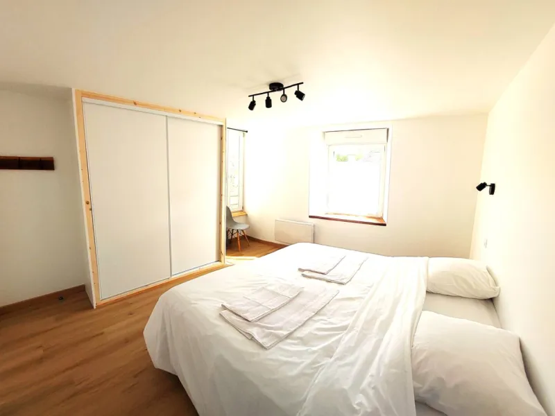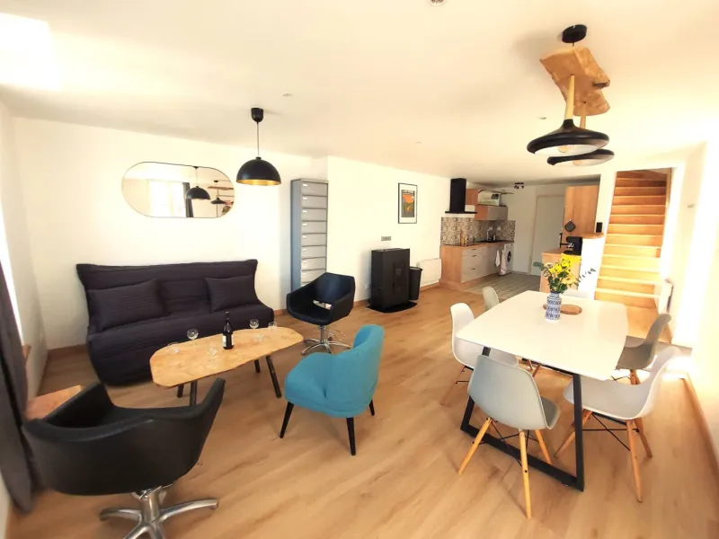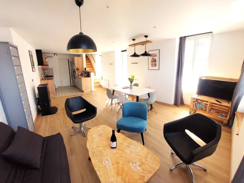Spacious (110 m2), modern and bright accommodation in the heart of Suisse Normande. Ideally located next to the Orne, the Vélo Francette (greenway), along the GR Tour de la Suisse Normande and the loop of the Hom, close to the nautical base, the town center and the aquatic complex. The fully-equipped accommodation comprises 3 bedrooms, two of which have king-size beds that can be converted into 2 single beds. A sofa bed in the living room converts into a comfortable double bed. The shared courtyard has been designed with your relaxation in mind. A secure bicycle garage with plugs is at your disposal.Localisation