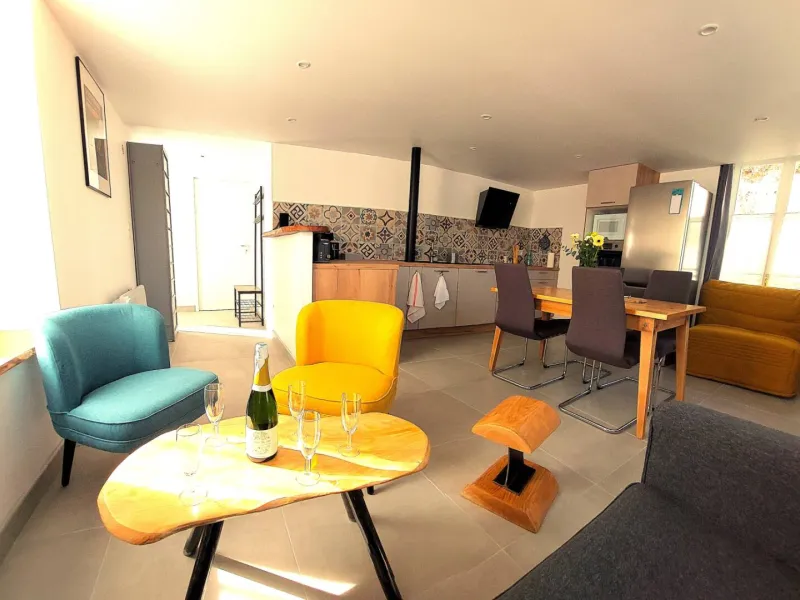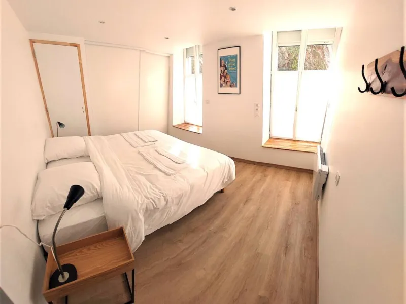 Modern, well-equipped and bright accommodation in the heart of Suisse Normande. Ideally located next to the Orne, the Vélo Francette (green route) and along the GR Tour de la Suisse Normande and the Loop du Hom. Close to the nautical base, town center and aquatic center, the accommodation comprises 2 bedrooms. One is equipped with a king-size bed that can be converted into 2 single beds, and the other with a 160x200 double bed. A convertible armchair in the living room converts into a comfortable bed. The shared courtyard has been designed for your relaxation. A secure bicycle garage, equipped with electrical outlets, is at your disposal.Localisation