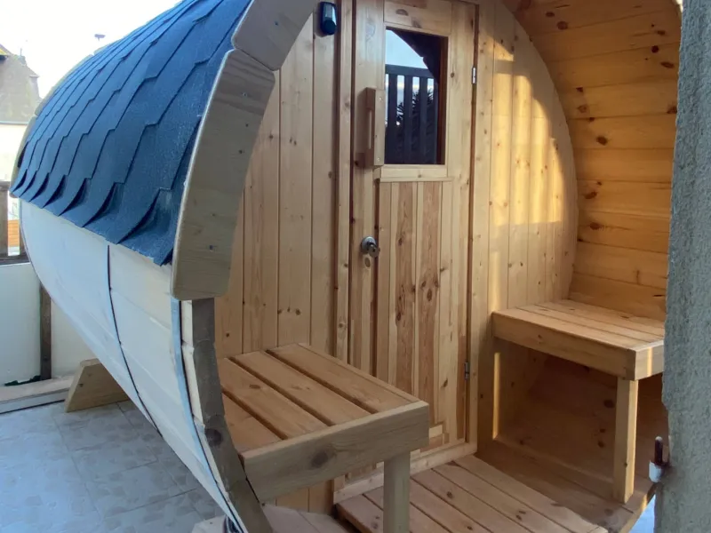 - Barrel sauna on outdoor terrace upstairs.